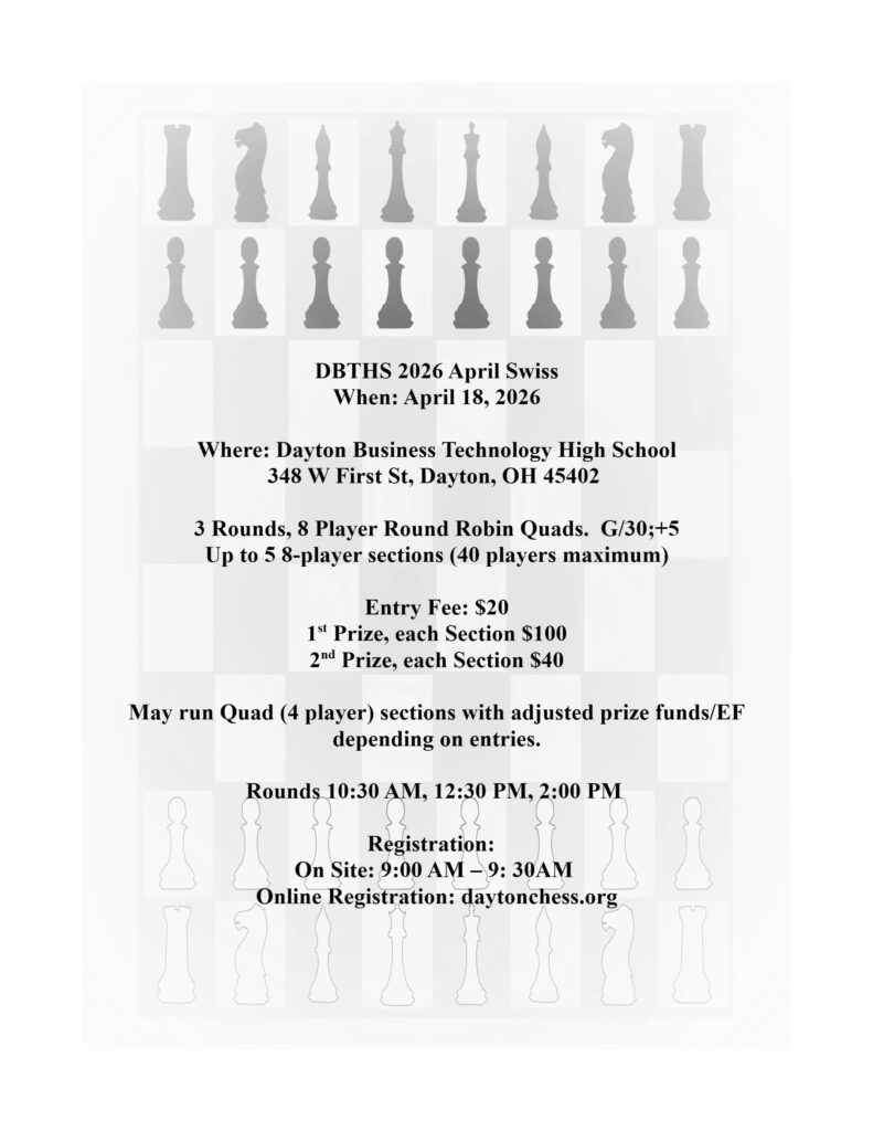 EMAIL info@daytonchess.org FOR QUESTIONS. UPDATES WILL BE POSTED HERE.